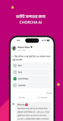Chorcha is a Problem-Solving and Admission Preparation Platform. Students of SSC (9-10), HSC (Science, Arts, Commerce & English Version), Admission, BCS, Bank Job, Primary Teacher and other Competitive Exams can easily prepare themselves for the Best Result through Chorcha App.