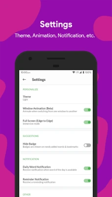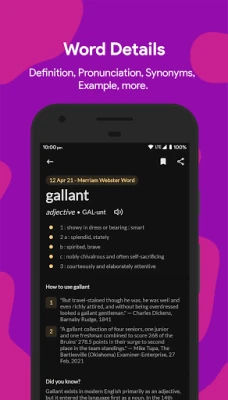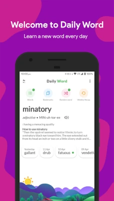 • Definitions and example sentences for every word • Correct pronunciation • Notification when new word available • Dark mode • Edge to Edge functionality • List of all words till date • Bookmark words • Beautiful widgets (3x2 and 5x3)