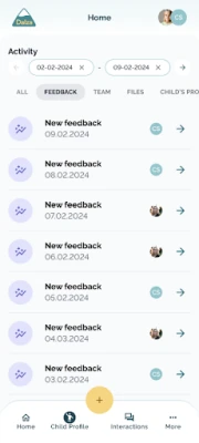 Activity and Fitness: Monitor and record weight, physical activities, exercise, and sporting interests and workouts within the Child Profile, Feedback, Chat, and Files sections.