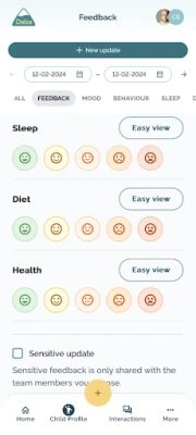 Mental and Behavioral Health: Users are able to record information relating to mood and mental health. This could potentially be used as data points for the purposes of providing mental health and counseling services by relevant specialists in the child's team.