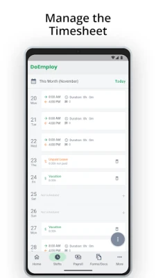 - Simplified Payroll Management: DoEmploy automates the payroll process, making it quick and accurate. Easily calculate salaries, deductions, taxes, and generate comprehensive payroll reports and paystubs with just a few taps.