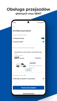 Thanks to the e-TOLL PL application, the use of toll sections of national roads in Poland will become easier than ever. Start your journey in the app and pay automatically using your smartphone or tablet. If you also deal with the transport of goods covered by the Electronic Transport Supervision System (SENT), use the additional function of journey monitoring within the application.