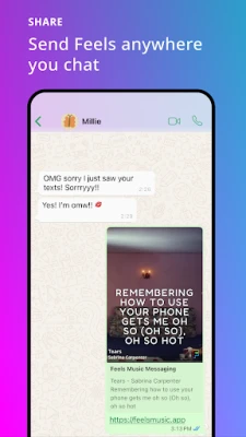 FEELS MUSIC MESSAGING allows the world to send MUSIC MESSAGES that combine audio, lyrics, and rich visual media.