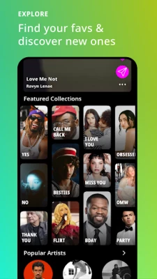Search for Artists, Songs, Lyrics and Emotions to find the Music Message you want to send. If you can’t find it, you can Create your own.