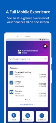 The First Foundation Bank (FFB) Mobile app powered by MX makes it even easier to manage your bank accounts and personal finances. By allowing you to securely connect all of your external accounts, you can see your full economic standing and create your own path towards financial wellness. It is comprehensive, intuitive, secure, and available anytime and anywhere you need it.