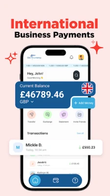 Send money home to your loved ones, family and friends Instantly. Exchange multiple currencies at Bank beating rates Send and Receive Multiple Currencies Globally. International Business payments: Paying your suppliers or business partners invoices abroad. In App 24/7 Customer support Notifications throughout your payment stages.