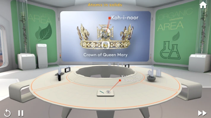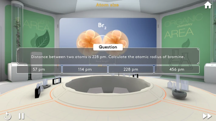 MEL VR Science simulations also has lessons, labs, and simulations covering isotopes, electrons, ions,the periodic table, molecular formulas, isomers, electrostatics and much more.
