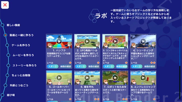 ゲーム作りを楽しみながらプログラミングを学ぶことができます。プログラミング言語の難しい文法や記号を覚える必要はありません。