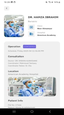 Built to be used internally by surgeons at Noor Almamzar medical center to see assigned patient surgeory consultations.