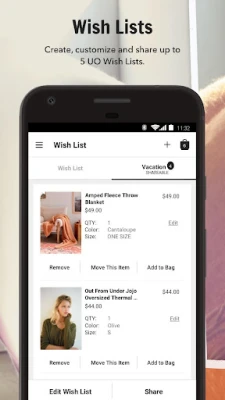 - Shop — Find the newest arrivals, exclusive collections and more. Explore our expanded product selection with enhanced search and express checkout. Easily shop by look or favorite brand from any product page and watch videos of select products. - Discover — Explore our curated feed for the latest trends and looks, plus get real-time inspiration from our @urbanoutfitters community. - Wish Lists — Create, customize and share up to 5 UO Wish Lists. - UO Rewards — Get special offers and discounts, earn exclusive rewards and enter to win prizes as a UO Rewards member. - Account — Keep track of your orders, get delivery details, access previous purchases and more. Locate and bookmark nearby UO stores using our Find a Store feature.